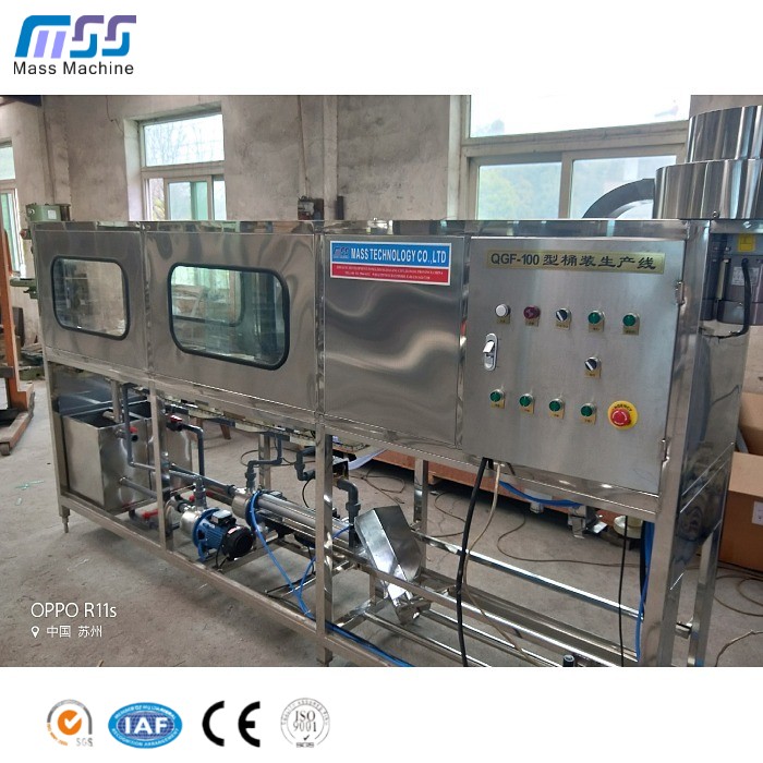 The 5 gallon barreled water filling machine is composed of washing, filling and sealing. The bottle washing machine uses multiple washing liquid sprays and disinfectant spray to achieve the purpose of washing and disinfecting, and the disinfectant can be recycled. The sealing machine can be automatically sealed and equipped with a shower device during the delivery of the cap to ensure that the cap is sterile and clean. The filling machine can automatically wash, disinfect, fill, gland, count and output. It has the features of complete functions, novel design and high degree of automation. It is a new type of bottled water filling equipment integrating machine, electricity and gas.